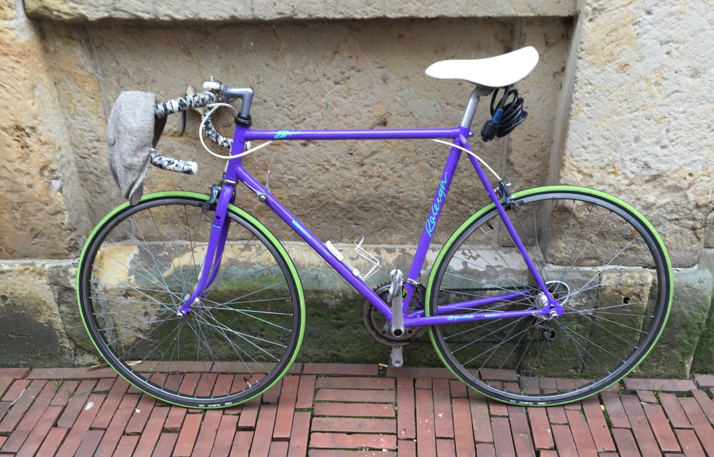 In den 80-er Jahren erworben verschwand es nach einiger Zeit im Keller. In den Jahren danach wurden lediglich das Lenkend und die Reifen getauscht. Somit steht heute ein weitgehend originales Rad in der Farbgebung Violet/Grün in meiner Sammlung.