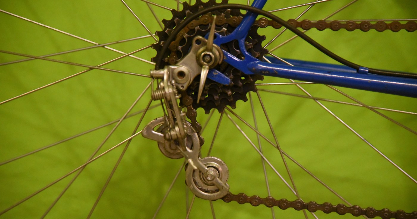 Die Schaltung stammt von Huret. Der hintere Umwerfer weist den Schriftzug Svelto auf. Huret brachte die Svelto 1963 heraus, was das Baujahr des Rades bestätigt. Die Svelto war eine einfache, kostengünstig zu produzierende Schaltung, die in der Kombination mit den weiteren Huret-Bauteilen gut arbeitete, sich aber durch die Konstruktion während ihrer Nutzungszeit verzog und an Präzision verlor.