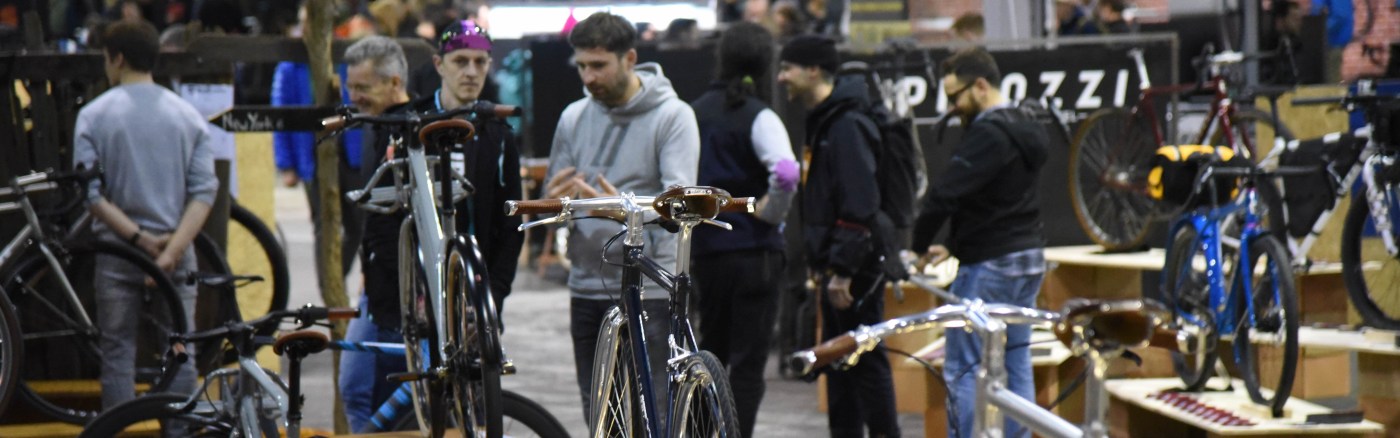 Kurz vor 18 Uhr. Es haben sich schon einige Besucher vor dem Eingang angesammelt und warten begierig auf Einlass. Das Team am Tor nimmt es sehr genau. Punkt 6:00 wird das Tor geöffnet und die Menge strebt zur Kasse. Im Vorfeld wurde die erste Änderung deutlich. Im Gegensatz zum Vorjahr konnte ich keine Karten im Internet kaufen, so war jetzt Anstehen an der Kasse angesagt. Auch gab es kein Zwei-Tage-Ticket. Ich konnte zwar für zwei Tage bezahlen muss aber am Folgetag mit der Quittung wieder zur Kasse und bekomme dann ein Bändchen. Hier ist bei der Organisation noch “Luft nach oben“ wie man so sagt. Dennoch sind wir nach zwanzig Minuten in der ersten Halle. E-Bikes; wir können sie schnell durchlaufen. Ich fühle mich immer noch nicht von der elektrischen Unterstützung angezogen, obwohl ein paar Hersteller mittlerweile wirklich schöne Räder bauen, denen man die Unterstützung nicht ansieht. Die große Halle weist eine etwas andere Aufteilung auf. Im Mittelbereich sind die Stände diagonal gegliedert, die Gänge wirken breiter und insgesamt scheint es übersichtlicher. Einige bekannte Marken finden sich an den bekannten Orten und neue Aussteller fallen beim ersten Rundgang auf. In der dritten Halle haben sich wieder Zubehör und Mode wie aber auch kleinere Läden zusammengefunden. Manche Marken konnten sich vergrößern, einige sind neu dazugekommen aber auch der ein oder andere Aussteller fehlt in diesem Jahr. In den Gängen treffe ich die ersten Bekannten. Wir verabreden uns für später zum Bier auf dem Food-Court. Der Abend dient dem Überblick. Im Eventbereich wird bereits Bike-Polo gespielt und der Testparcours ist vergrößert. Hier treffe ich auch schon auf Peter von Butchers & Bicycles aus Kopenhagen. Die Testfahrt verschiebe ich auf später.