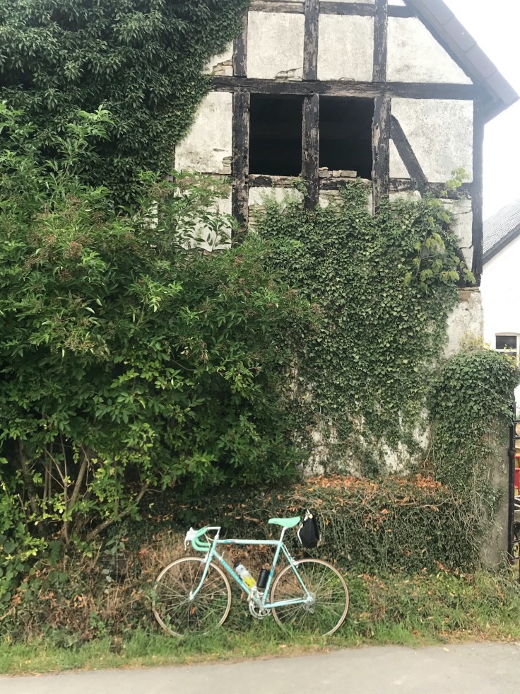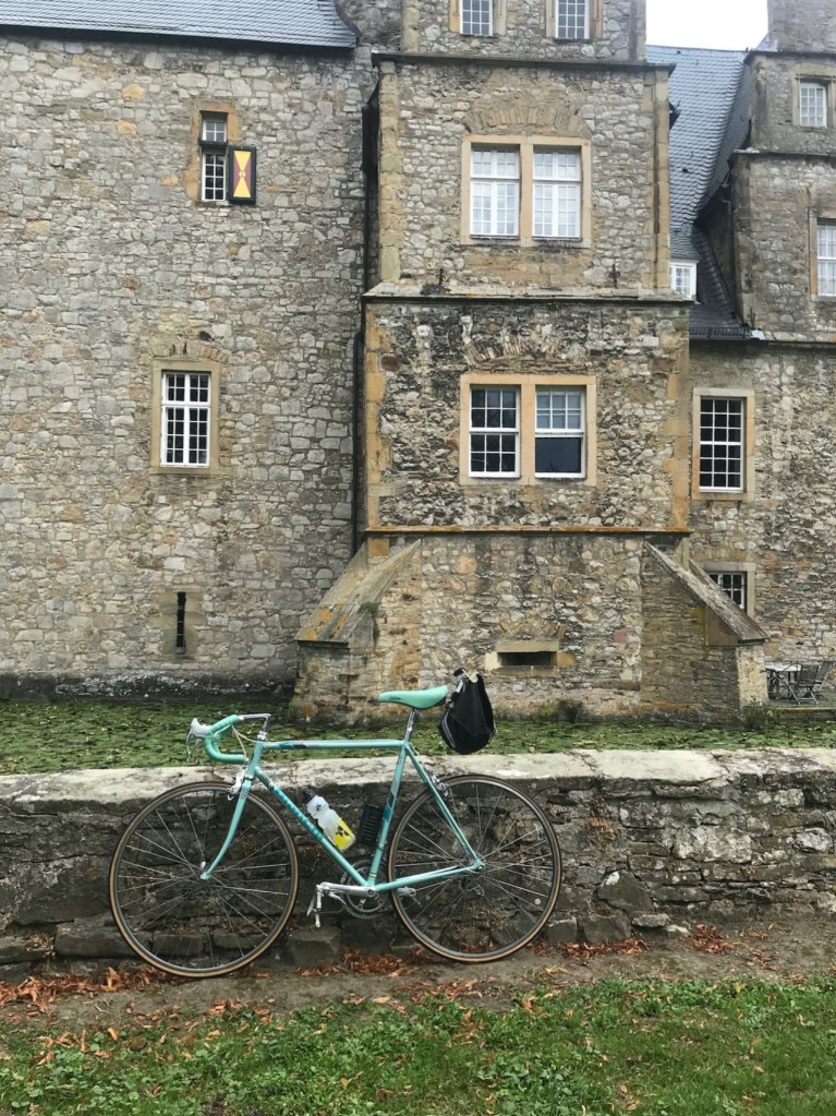 Lang ist‘s her dass Jürgen im Sommer 2020 zur Rennradrunde durch das Osnabrücker Land geladen hatte. Im Rennradforum waren einige Empfindlichkeiten voran gegangen, da es zu Termindoppelungen kam aber jetzt war alles geklärt und dass wichtigste lag vor uns: eine flotte Runde durch den Osten des Osnabrücker Umlandes. Ich war schon etwas angespannt, da ich nicht den Ehrgeiz und den Leistungsstand der anderen Teilnehmer kannte. Schließlich wollte ich ja nicht die Rote Laterne bekommen oder gar vom Besenwagen eingesammelt werden. Am Vortag war dann noch die wichtigste Frage zu klären: Welches Radel hättens denn gern (frei nach Robert Lemke). Eigentlich hatte ich mir vorgenommen das gerade angekommene Holdsworth Cyclone von 68 zu wählen, aber bei der Critical Mass zwei Abende zuvor machte die Schaltung noch Probleme. Also besser auf bewährtes Material zurückgreifen. Dass Bianchi Rekord 925 hatte bisher keinerlei Mucken gemacht und passt wie angegossen. In seinem Farbton „Mint“ ist es trotz der Fehlfarbe für echte Bianchi-Fans immer wieder ein Hingucker. Also die Laufräder ausgebaut, alles gut verpackt (ich sollte mir doch mal Laufradtaschen zulegen) und hinten ins Cabrio verstaut.