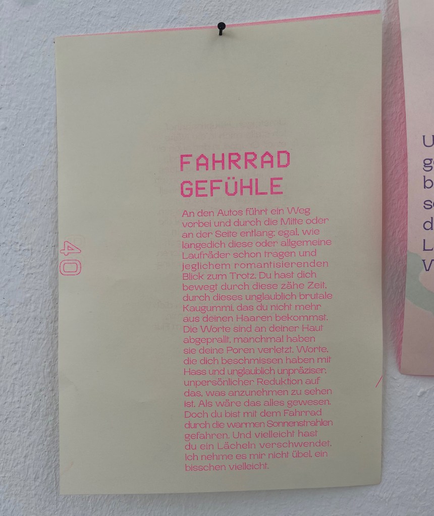In the summer of 2022 I was able to visit two exhibitions on the subject of bicycles in Bremen and Wilhelmshaven. The artists‘ examination of the topic of mobility, status symbol, traffic turnaround, and dealing with everyday objects was artistically conducted in a broad spectrum. A link was drawn from the first ready-made from Marcel Duchamp in 1913 to how the more than 200-year-old means of transport is used today.