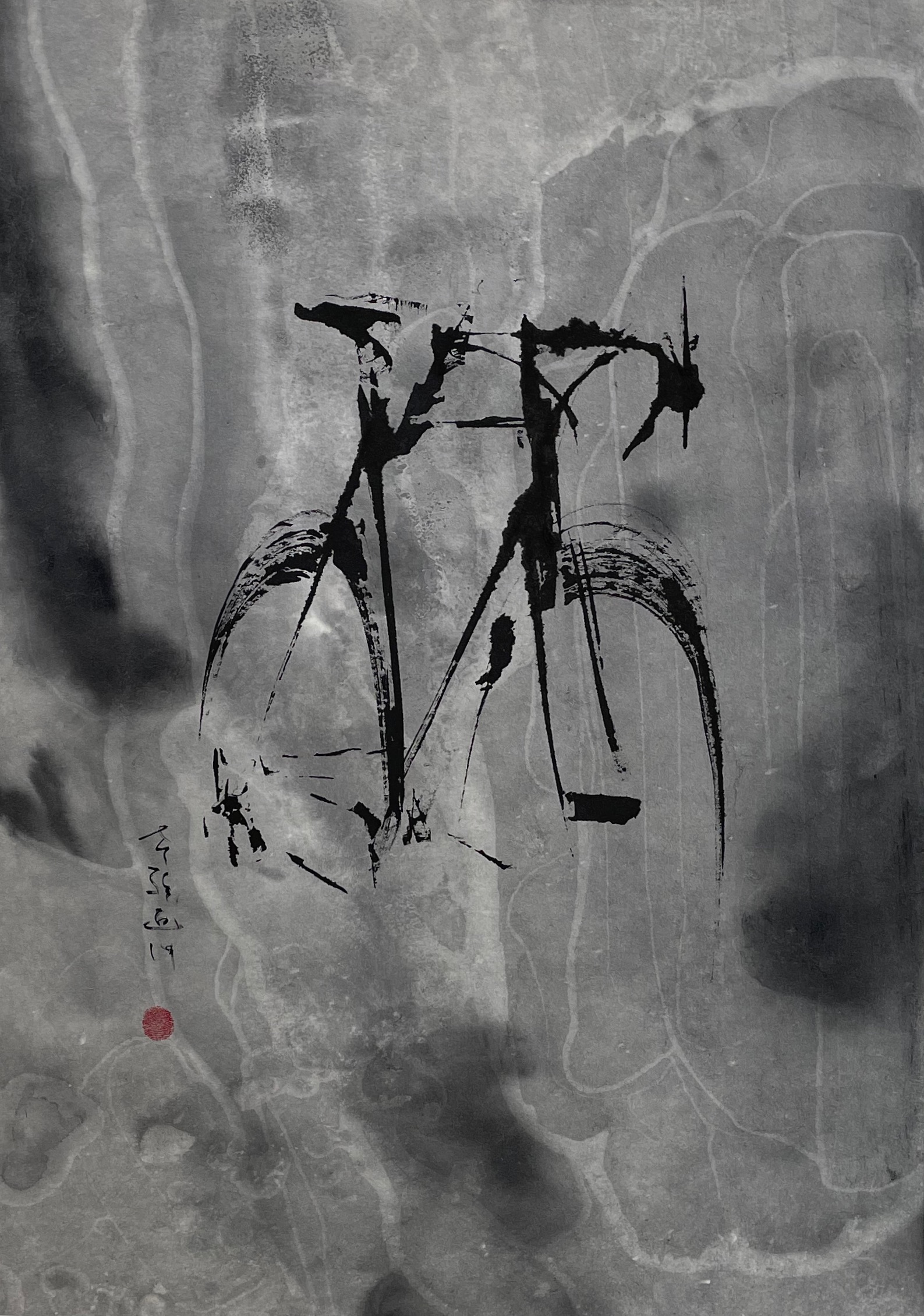 Die städtische Galerie Bremen liegt direkt an der Weser und bot damit die Möglichkeit, die Ausstellung Bike in Head direkt vom Weserradweg erfahrbar zu machen. Über eine Rampe konnte der Besucher mit seinem Rat direkt in die Ausstellunghallen hineinradeln und die künstlerische Umsetzung des Themas im direkten Dialog mit seinem eigenen Rad an der Hand erleben. In Bremen sind künstlerische Positionen versammelt, die sich mit der Bedeutung des Fahrrades in unserer Gesellschaft befassen. Die ökologischen Herausforderungen, die Verkehrswende, individuelle Mobilität und neue Technologien wie auch als Statussymbol beschäftigen die Ausstellungsmacher und die Künstler. So setzt sich zum Beispiel der Künstler Hannes Langeder mit seinem „Fahrradi“ mit dem Thema Statussymbol direkt auseinander. In einer GfK Hülle, die dem italienischen Sportwagen nachempfunden ist, ist eine leichte Rahmenkonstruktion untergebracht, in dem der Fahrer bequem sitzen und den Pedalmechanismus bedienen kann. Reicht es also, sich in der Form eines eleganten Sportwagens fort zu bewegen, um seinen Statusbedürfnis zu befriedigen? Sind ihre Geräusche eines rührenden Motors über Lautsprecher ausreichend oder braucht es auch die Vibrationen im Fahrzeug? Kann durch diese künstlerische Interpretation den ökologischen Notwendigkeiten nach einer Veränderung der Mobilität Rechnung getragen werden und gleichzeitig der Drang nach „Ich bin etwas besonderes“ befriedigt werden? In diesem Kunstwerk kann jeder seine Antwort auf diese Fragen finden. Auf zwei Ebenen sind in der städtischen Galerie, die unterschiedlichsten Interpretationen und der Umgang mit dem Thema Fahrrad in einem breiten künstlerischen Spektrum zu sehen. So baut der Künstler Wolfgang Zach Fahrradskulpturen, die erst beim zweiten Blick erkennen lassen, dass sie nicht nutzbar sind. Der Betrachter überlegt, ob sie nicht doch der Fortbewegung dienen könnten. Mit traditionellen Tusche Zeichnungen, die immer um das Radfahren kreisen, wirft der japanische Künstler Kosuke Masuda uns in kleinen, schnell dahin geworfenen Bildern das Thema Fahrrad vor und bringt uns gleichzeitig in eine Ruhe, die an leicht dahingleitende Fahrradbewegung erinnert.