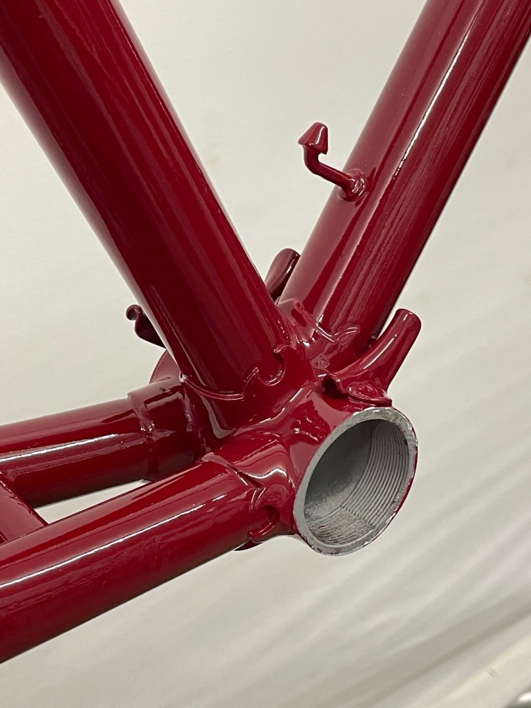 In England wird diese Frage übrigens wesentlich entspannter gesehen. Da wird ein Rahmen mit einigen Gebrauchsspuren wesentlich häufiger mit neuem Finish versehen. Dort stellt es für einen Rahmen, der z.B. von Bob Jackson oder anderen Rahmenbauern lackiert wurde durchaus eine Wertsteigerung dar und die Rahmenbauer verstehen es als Ehre und Herausforderung einen Rahmen eines Kollegen zu restaurieren.
