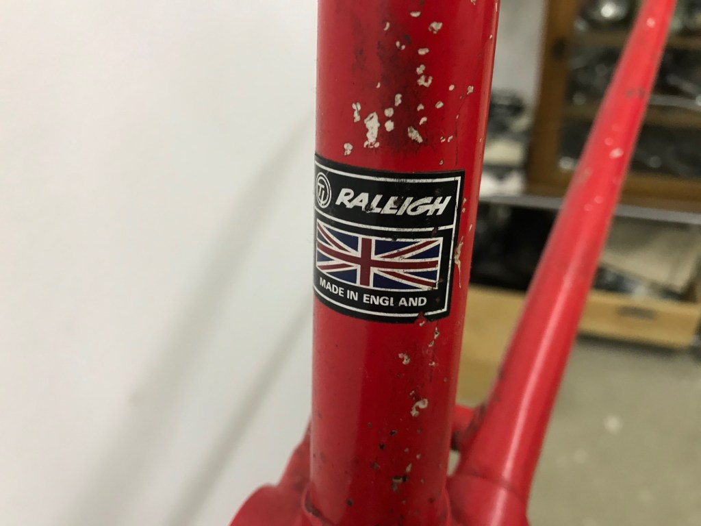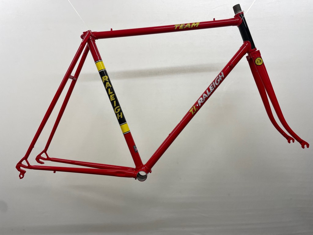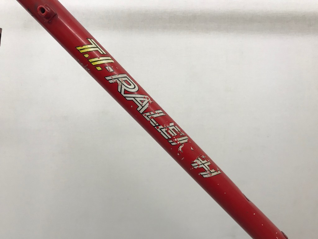 Somit stehe ich mit den zwei britischen Rahmen, bei denen ich mich für einen Neulack entschieden hatte, durchaus in der Tradition der Insel. Der Ti-Raleigh Replik 12 Rahmen liegt schon ein paar Jahre bei mir und wartete auf eine Restaurierung. Er war auch wirklich übel zugerichtet. Ich hatte ihn in Frankreich gekauft und ihn auf den Bildern nicht so extrem verkratzt eingestuft. Er war mit Campagnolo Komponenten ausgestattet, die teilweise aber nicht ganz zeitgemäß eingestuft werden müssen und kam ohne Laufräder, Lenker und Sattel zu mir.