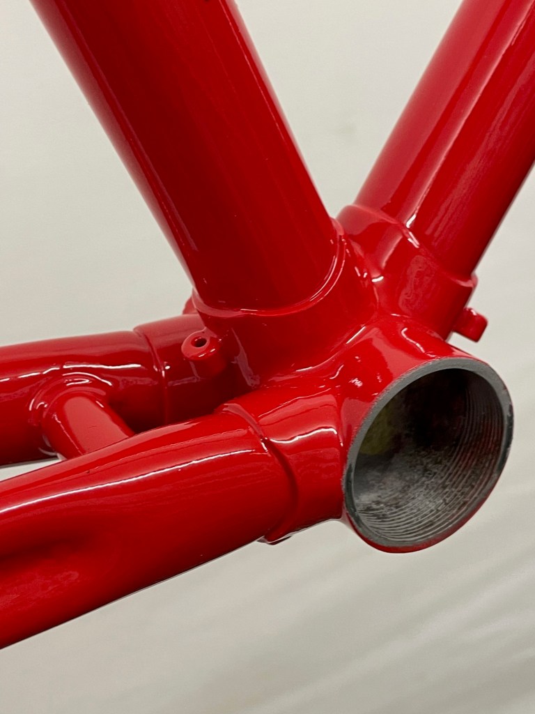 Nun galt es nur noch den Lackierer meines Vertrauens zu finden. In den englischen Foren gab es immer wieder Tipps und Bilder von hervorragend restaurierten Rahmen. Besonders bei den älteren Rahmen faszinierten mich die Lug- und Boxlining-Ergebnisse. Aber der Versand nach England bietet sich seit dem Brexit nur noch an, wenn sozusagen gar nichts mehr geht, sprich eine solch spezielle Lackierung und besondere Decals benötigt werden, die auf dem Festland nicht erreicht werden. Darauf werde ich wohl bei meinem Mike Mullet noch zurückkommen müssen. In Osnabrück und Umgebung hatte ich bisher keinen Lackierbetrieb mit Fahrraderfahrung gefunden. Bisher hatte ich hier nur einen Betrieb für eine Pulverbeschichtung ausprobiert, doch das kam für diese beiden Rahmen nicht in Frage. Da kam mir mein Freund Werner zur Hilfe. Er hat ein Faible für Marschall-Rahmen und berichtete Mir, dass Uwe Marschall auch Restaurierungen durchführt. Da er in den nächsten Tagen sowieso zu Marschall Frameworks waren wollte, könnte er meine zwei Rahmen mitnehmen.