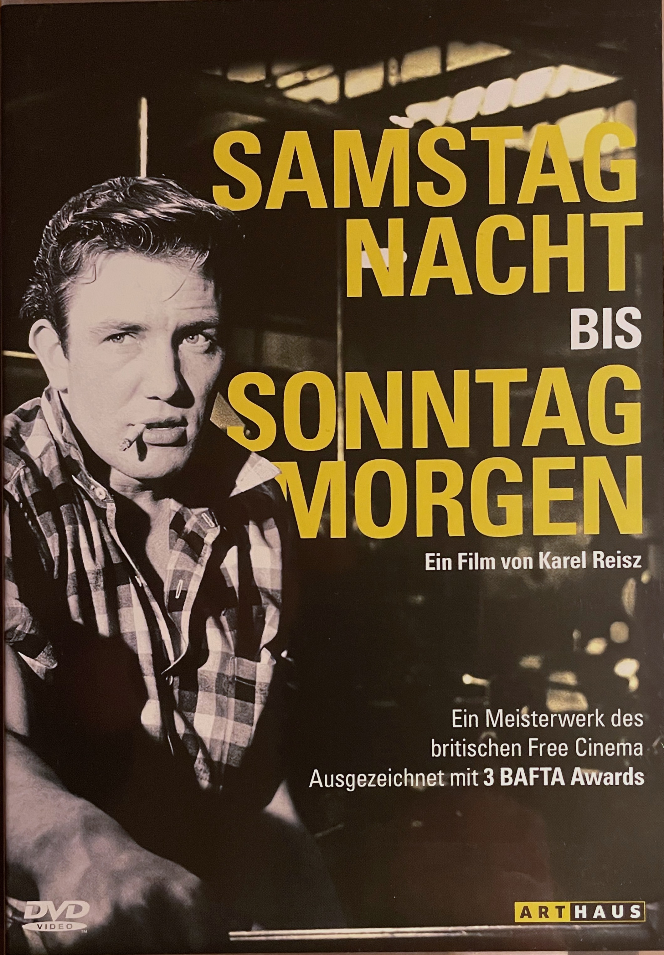 Samstagnacht und Sonntagmorgen – sind das noch Zeiten in einer Woche, die für uns eine Besonderheit darstellen? Für mich waren sie es noch nie, da ich nie am Samstag besonders lang in eine Disco ging und dann den halben Sonntag zum Ausschlafen brauchte. Natürlich gab es Parties die lang dauerten, doch bildeten sie keine Regelmäßigkeiten, die sie in einen besonderen Kontext zu den anderen Wochentagen stellten. Anders sah dies noch in den 50er Jahren in den Arbeitervierteln aus. 48 Stunden Woche, Akkordarbeit in den Fabriken und die Freizeit beschränkte sich auf das Wochenende. Zwar hatten insbesondere in England die Gewerkschaften schon einiges für die Arbeiter erreicht aber immer noch gab es eine enorme Distanz zwischen den „wir da unten und ihr da oben“. Die soziale Entfremdung und die Klassenkonflikte wurden insbesondere von Schriftstellern wie John Osborn und Harold Pinter in ihren Werken verarbeitet. 1956 wird in England für diese Schriftsteller der Begriff der „Angry Young Men“ geprägt. Zu Ihnen wurde auch Alan Sillitoe gezahlt. Geboren 1928 in Nottingham, wuchs er in einfachen Verhältnissen auf. Sein Vater konnte die ersten Schreibversuche des jungen Alan in der Schulzeit nicht fördern, da er Analphabet war. Also scheint sein Weg mit dem Job in einer Fahrradfabrik in Nottingham vorgezeichnet, in der auch sein Vater Arbeit gefunden hat.