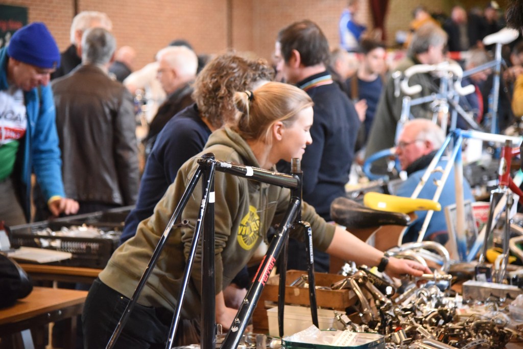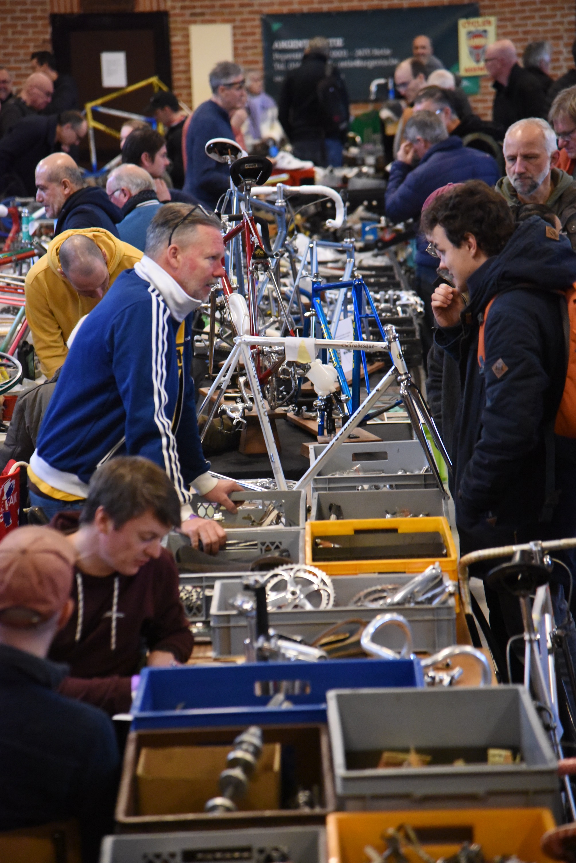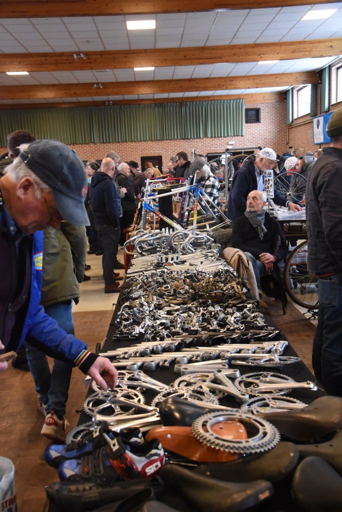 Nach der Enttäuschung der Moto Velo in Rosmalen waren wir natürlich umso gespannter, als wir uns am letzten Sonntag auf den Weg nach Dessel machten. So langsam brauchen wir fast kein Navi mehr, um den Weg in die Meisstraat zu finden. Ich wähle diesmal die Route durch die Niederlande, da ich diese als deutlich entspannter empfinde, als durch das Ruhrgebiet zu fahren. Trotzdem waren wir pünktlich um zwei Minuten vor Zehn vor dem Parochicentrum in Dessel. Wie in jedem Jahr drängten sich die Radfans in den Gängen. Die richtigen Schnäppchen werde ich wohl nie machen, da ich erstens nicht so früh wie die Verkäufer in der Halle bin und zweitens mich ungern mit zehn anderen um eine Kiste dränge, sondern lieber warte bis sich die Reihen etwas gelichtet haben.