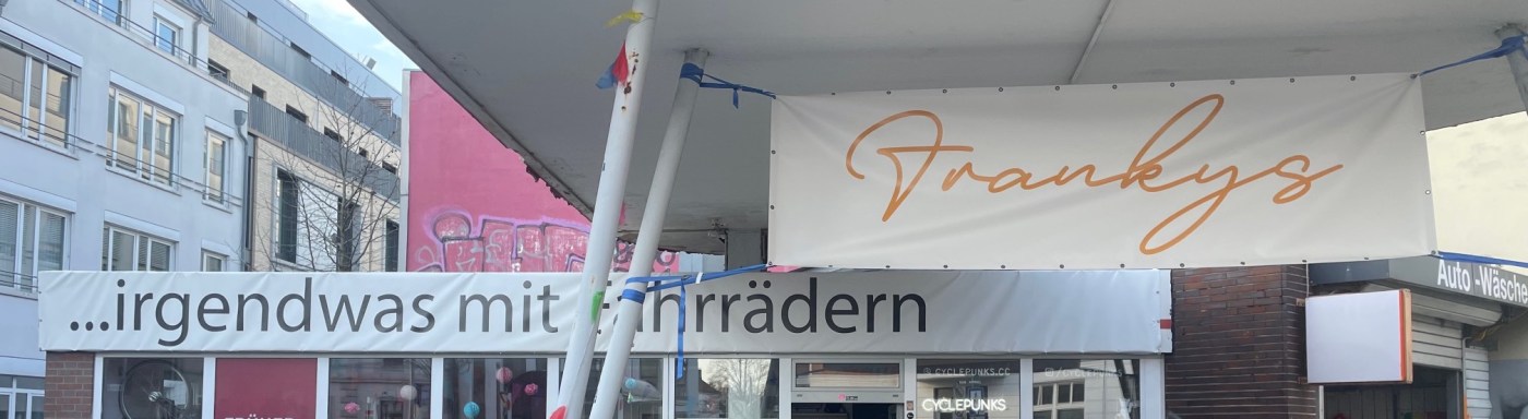 Am letzten Samstag hatte ich endlich Gelegenheit, einen privaten Termin in Oldenburg mit dem Besuch des Frankys in der Kaiserstraße zu verbinden. Ich beobachte schon seit längerem die tollen Aktivitäten von Frank Glanert, zuerst in Varel und nun seit ein paar Monaten in Oldenburg. Die ehemalige Tankstelle mit dem Flair der fünfziger Jahre sticht mir schon seit längerem ins Auge. Umso mehr freue ich mich, dass nun das Frankys dort untergekommen ist und Veranstaltungen zu, über und um das Thema Fahrrad und Radverkehr dort veranstaltet werden. Begleitet wird das ganze durch Lesungen, Konzerte und Diskussionen.