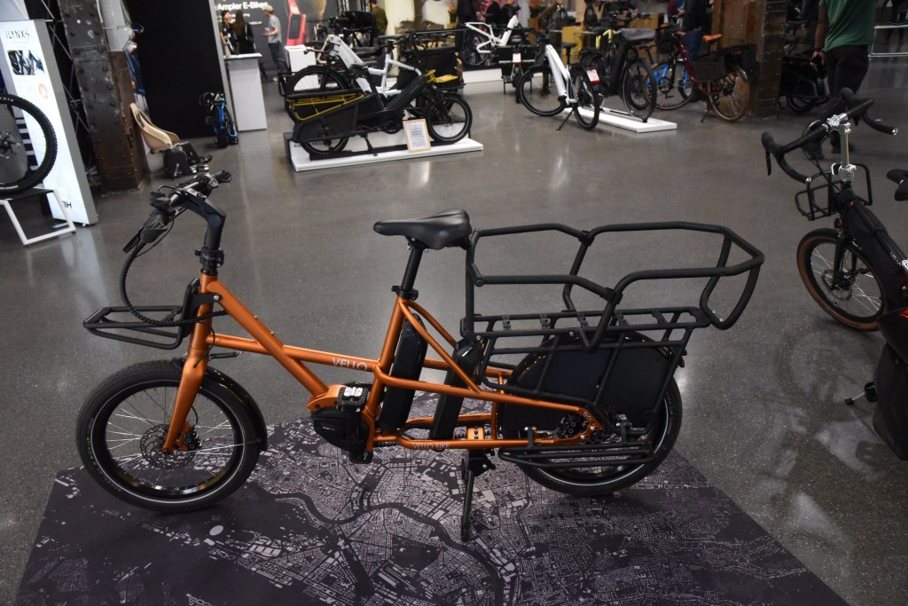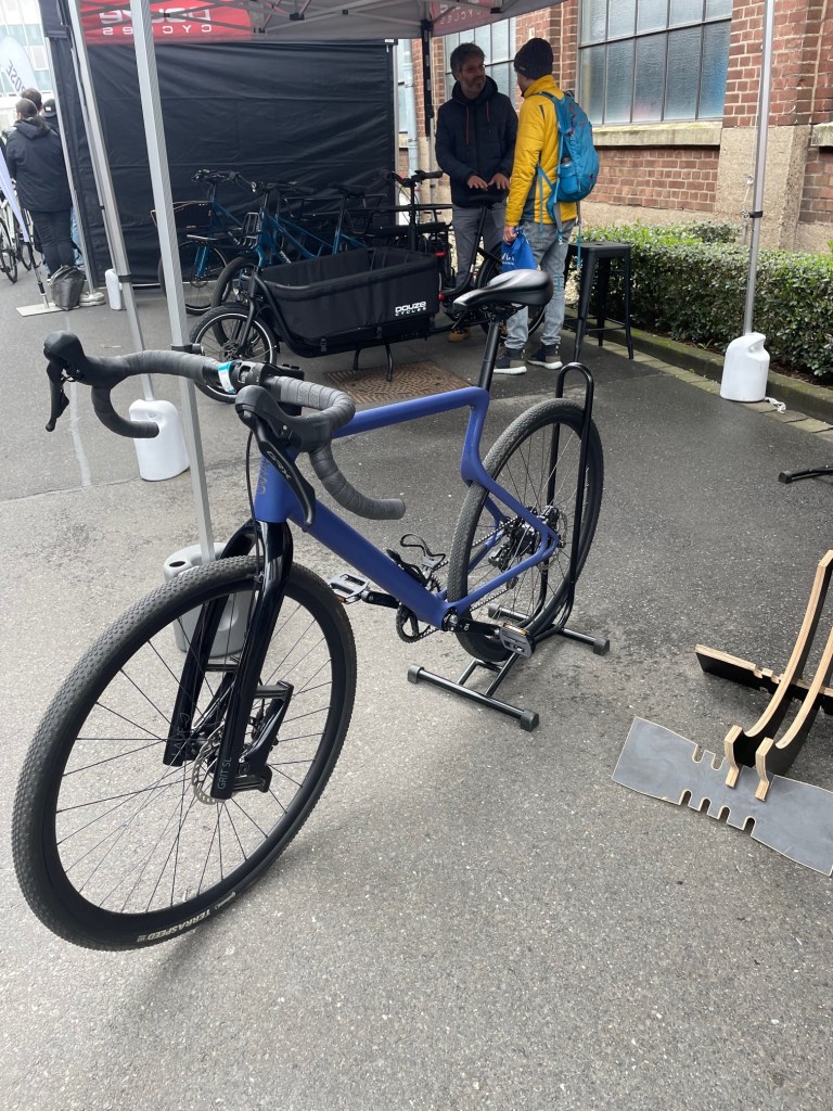Den verbleibenden Vormittag wollte ich noch für ein paar Aussteller nutzen, die ich am ersten Tag ausgelassen hatte. Darüber hinaus war das Wetter jetzt wesentlich besser für das Außengelände und einer Testfahrt geeignet. So führte mich mein erster Weg zu Vello-Bike. Ich hatte vor einigen Jahren von Valentin Vodev, dem Entwickler des Vello in Wien die gelegenheit bekommen das Rad ausgiebig zu testen. Nun interessierte mich, ob das Gute noch weiter zu entwickeln war oder ob es etwas ganz anderes entstanden ist. Und es war etwas anderes entstanden: Vello goes Lastenrad. Das Vello Sub erinnert zwar durch die Formensprache und die Geometrie an das Ur-Vello bietet aber durch den verlängerten Radstand Platz für Lasten oder zwei Kinder. Allerdings ist es nicht faltbar, was bei der Funktion allerdings auch wenig zielführend ist.