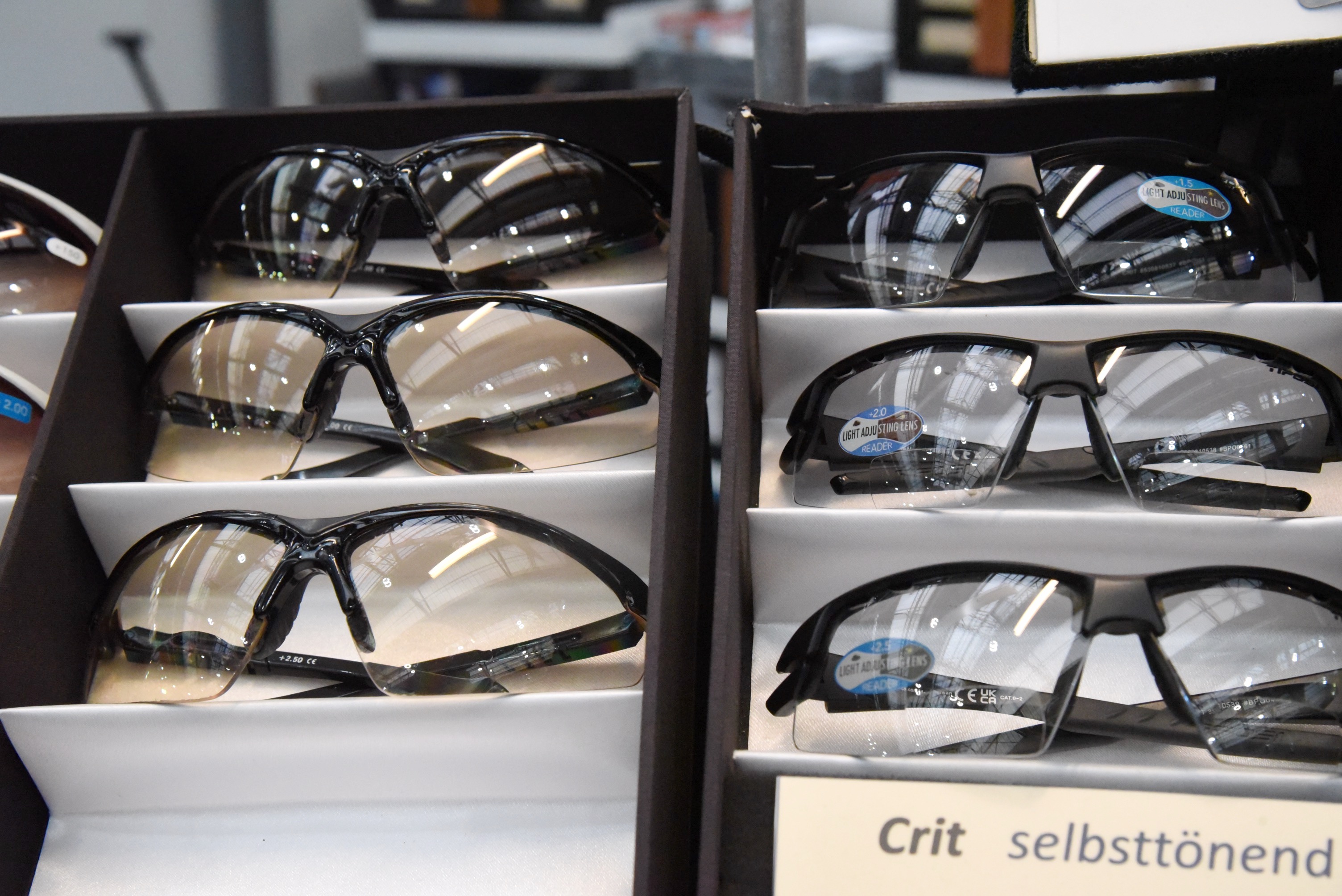 Vorbei an einigen Ständen, denen ich noch gerne einen Besuch abgestattet hätte geht es Richtung Ausgang und doch bleibe ich noch an einem kleinen Eckstand und dem Begriff „Überbrillen“ hängen. Als Brillenträger und noch dazu mit Gleitsichtgläsern, komme ich immer wieder in den Konflikt wie ich in der Abendsonne (die Morgensonne ist mir meist zu früh) vernünftige Sicht behalte. Meine Sonnengläser zum Aufstecken sind mir zu unsicher auf dem Rad und die letzte Sonnenbrille hat schon lange nicht mehr die richtigen Sehstärken. Eine Sonnenbrille, die so geformt ist, dass sie sicher über meiner eigentlichen Brille sitzt scheint mir genau das Richtige. Zwei / drei Modelle ausprobiert und die nächste Ausfahrt ist gesichert.