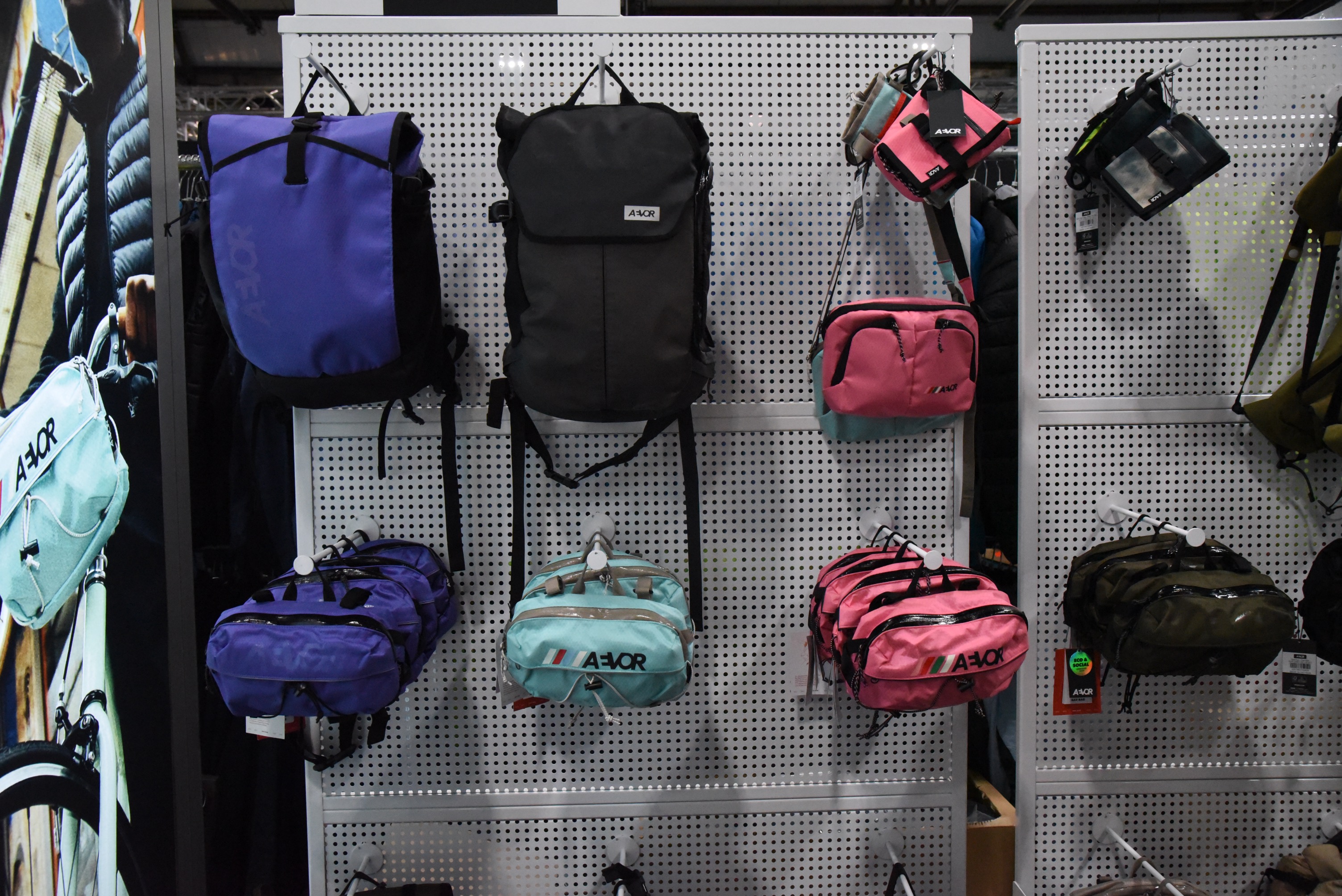 Mein nächster Gang führte mich zum Stand von Aevor / Pinqponq. Die Lenkertasche von Aevor habe ich schon seit längerem in schwarz und lila im Einsatz. Nun suchte ich noch eine Umhängetasche für mein iPad, die sich beim Radfahren auf dem Rücken fixieren läßt. Bei Pinqponq bin ich fündig geworden. Getestet wurde sie von mir noch nicht.