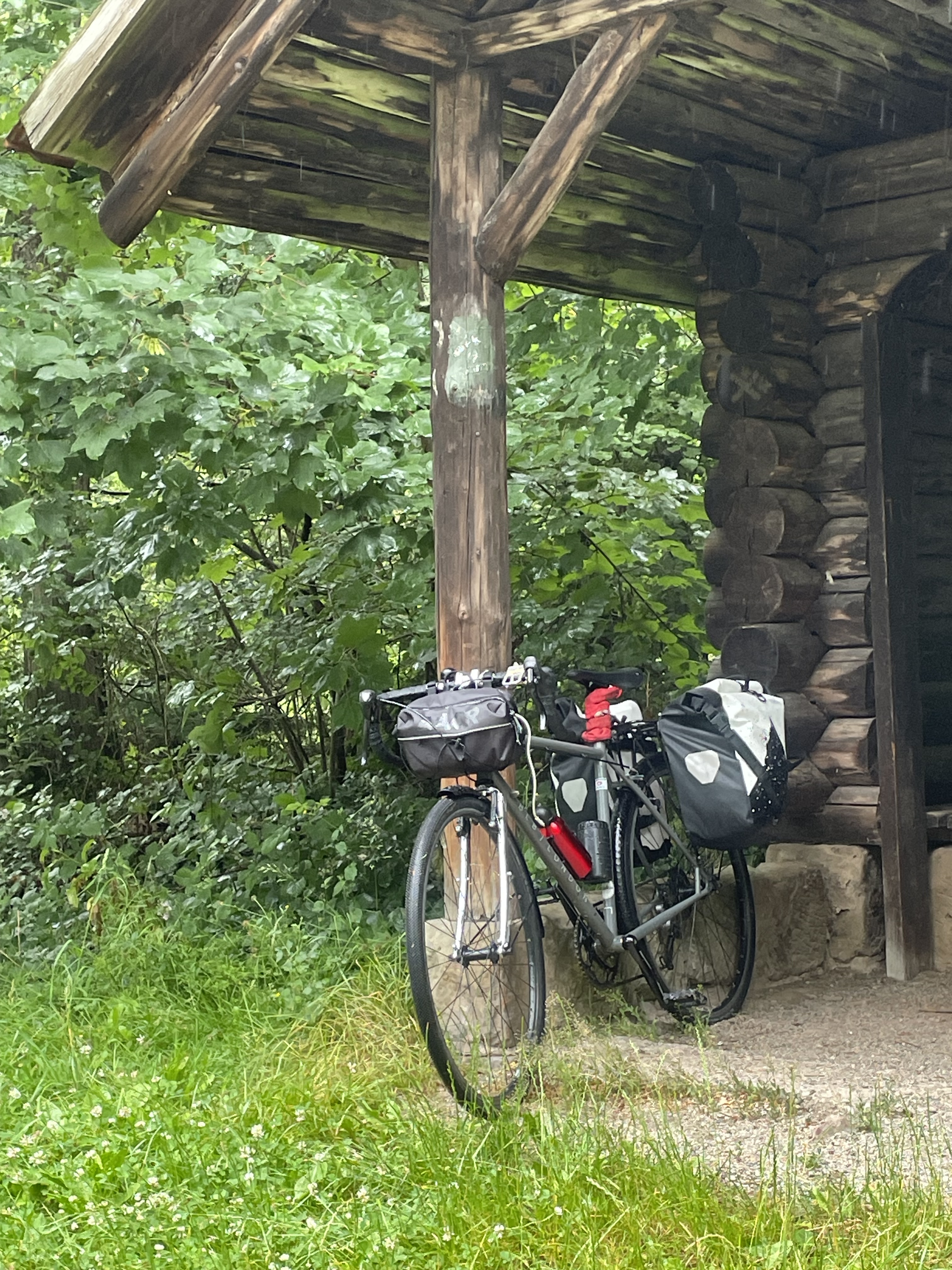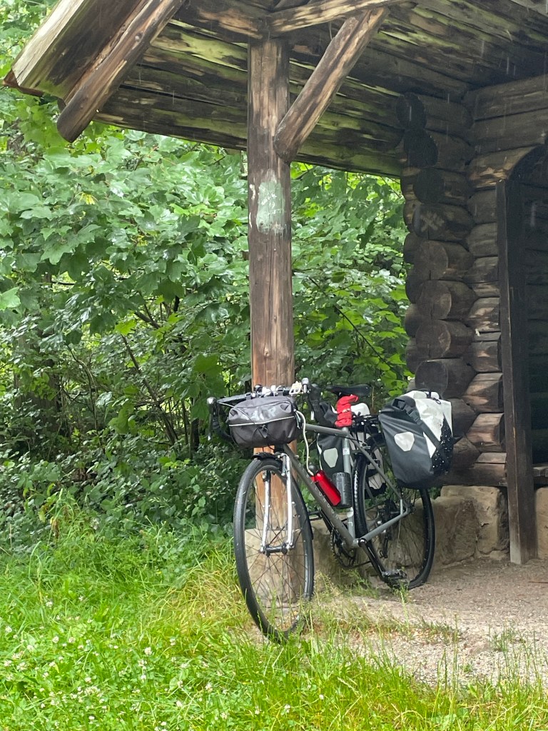 Die Strecke zog sich, die Steigung variierten, bis wir dann bei Umschwang den höchsten Punkt der Strecke erreicht hatten. Einsichtige Tourismus-Experten hatten dort eine Schutzhütte aufgestellt.