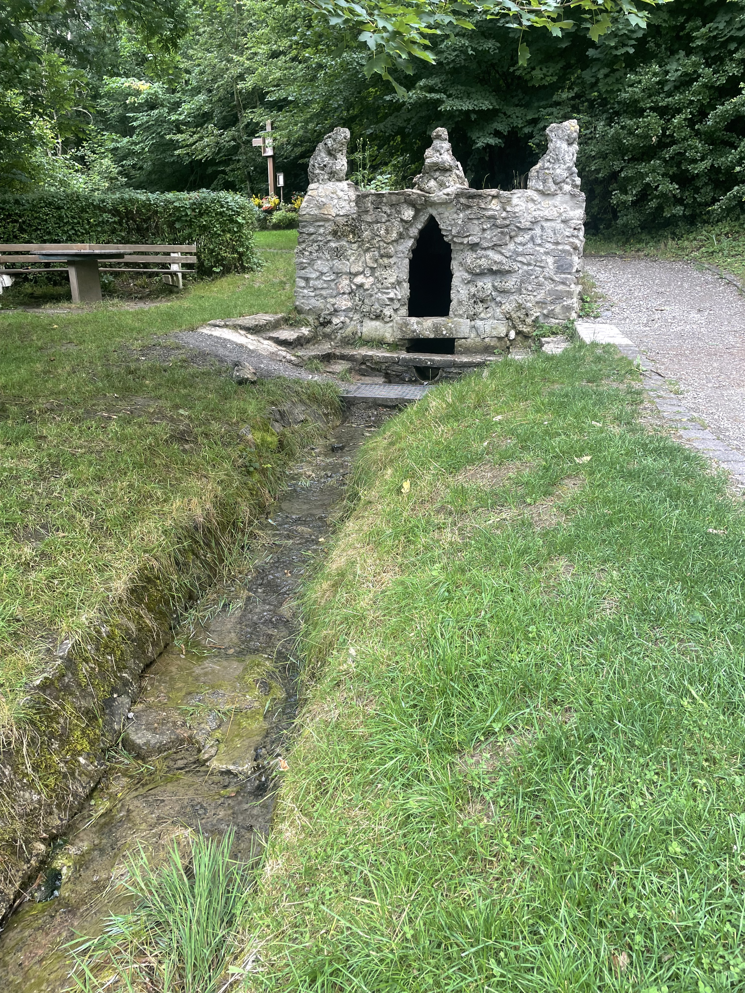 Eigentlich begann heute ja erst die geplante Unstrut-Radtour für uns. Nun, so ganz wie geplant, begann sie dann doch nicht. Kurz hinter Heiligenstadt verfehlten wir die richtige Abzweigung und strampelten einen ungeplanten Berg hinauf. Man könnte es natürlich als Kür bezeichnen, dass wir zu der Anfahrt zur Unstrutquelle einfach mal 6 km und 250 Höhenmeter mehr dazu fuhren. Kurz vor Mittag waren wir dann an der wirklichen Unstrutquelle.. Das Umfeld war gestaltet, wie man sich eine Quelle in den sechziger und siebziger Jahren vorstellte. Das eigentlich sprudelnde Quellchen war mit rustikalen Steinen ummauert. Aber das Quellwasser schmeckt hervorragend und so konnten wir gleich unsere Flaschen mit Original Unstrut Quellwasser für den Tag füllen.