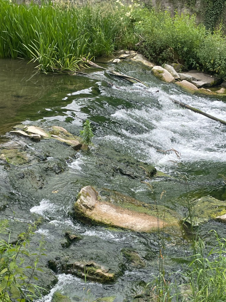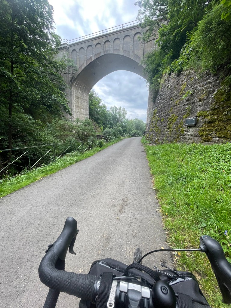 Auf dem Weg durchquerten wir Eisenbahnviadukte, kamen an malerischen Stromschnellen vorbei und landeten zur Mittagszeit im malerischen Mühlhausen.