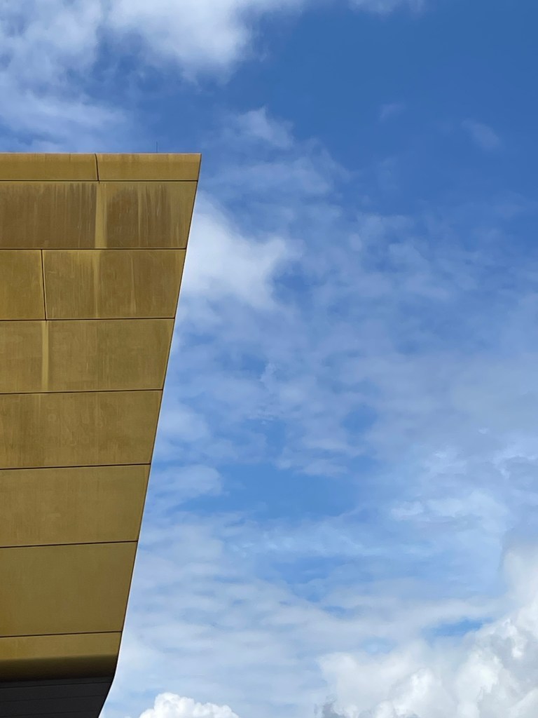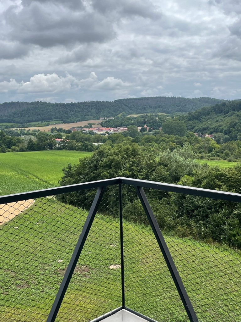 Unser nächstes Ziel ist die Arche Nebra. Kurz vor Nebra wurde in der Nähe von Wangen die Himmelsscheibe gefunden. Ihr zu Ehren hat man ein wunderschönes Museum errichtet, was oberhalb des Ortes Wangen thront. Ein goldener Baukörper ruht auf einem schwarzen Sockel und schwebt somit über dem Hang. Für uns stellt sich aus Zeitgründen die Frage, Museum oder Kuchen. Da in den letzten Tagen schon keine Zeit für ein Stück Torte war, entscheide ich mich schweren Herzens für den Kuchen. Das Museum muss warten.