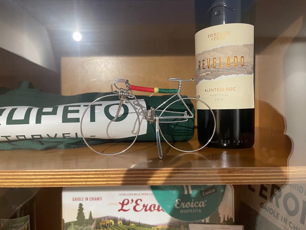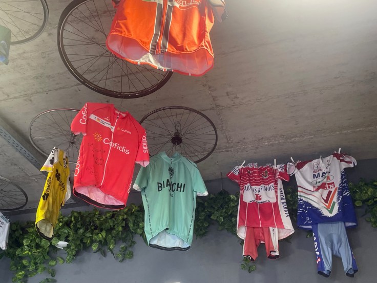 Das Grupeto (Portugiesisch für Grüppchen; im Radsport bei längeren Rundfahrten eine Gruppe von Fahrern, die sich bei Bergetappen am Ende des Fahrerfeldes bildet) lud mit schattigen Plätzen zu einem Kaltgetränk und Imbiss ein. Im Inneren dann viele Accessoires zum Radsport. An der Decke hängen Trikots und Laufräder, in die Theke ist ein Rennradrahmen integriert, und die Leuchten sind aus Laufrädern gefertigt.
