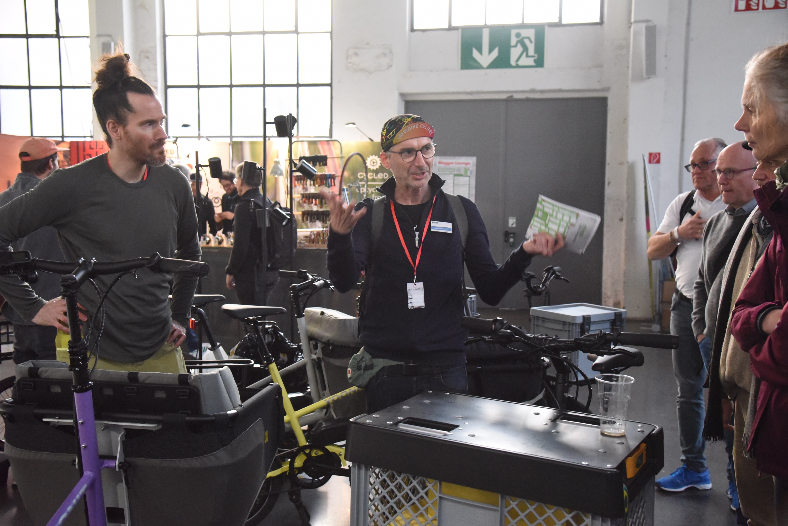 Kurz darauf treffe ich Alex Lutz von Cargobike.jetzt auf dem Stand von Yoonite Bikes, einem Hersteller, der sich auf relativ kompakte Cargo-Bikes spezialisiert hat. Cargobike.jetzt hatte sich mit einer Veranstaltung speziell für Handwerker und Unternehmen an die Cyclingworld angedockt und eine Spezialführung für diesen Kundenkreis auf der Messe durchgeführt. Ich bin der festen Überzeugung, dass das Potenzial in dieser Zielgruppe noch lange nicht ausgeschöpft ist. Im Gespräch mit Handwerkern muss ich immer wieder feststellen, dass diese darunter leiden, dass die Verkehre in den Städten immer dichter werden und kleine Wege, um zum Beispiel ein vergessenes Bauteil oder ein speziell benötigtes Werkzeug zu holen, die Zeit beim Kunden enorm verlängern können. Da können Cargo-Bikes hervorragende Entlastung der Handwerker und des städtischen Verkehr sein.