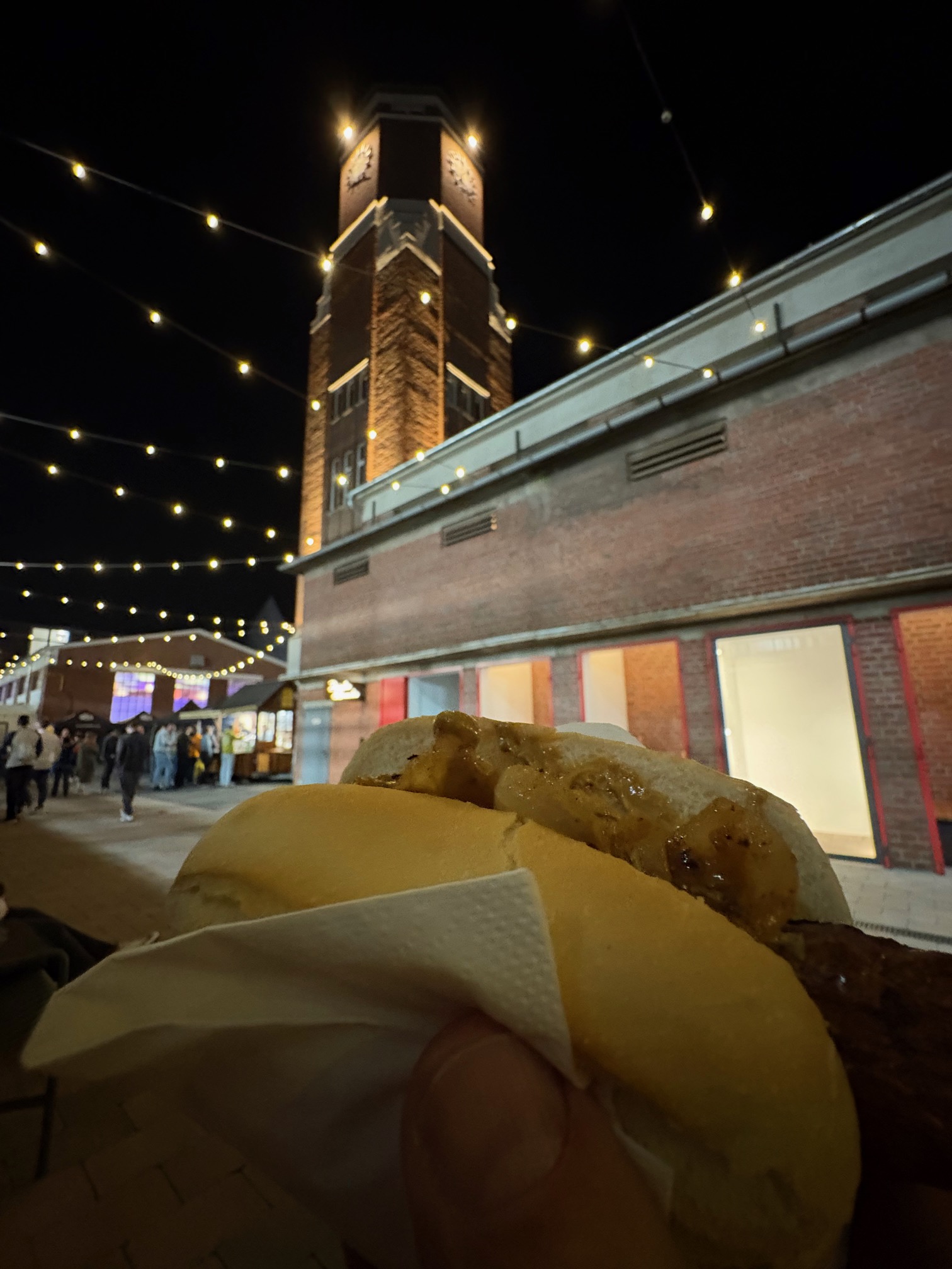 Inzwischen klingelt das Telefon zum gemütlichen Abschluss des Abends mit Alex. Bei Wildschweinbratwurst und einem Bier, von zugegebenermaßen nicht meiner Lieblingsmarke, beschließen wir den ersten Messetag. Auch dieser Austausch auf der Cyclingworld Europe bei milden abendlichen Temperaturen ist für mich immer ein wichtiger Bestandteil der Messe.