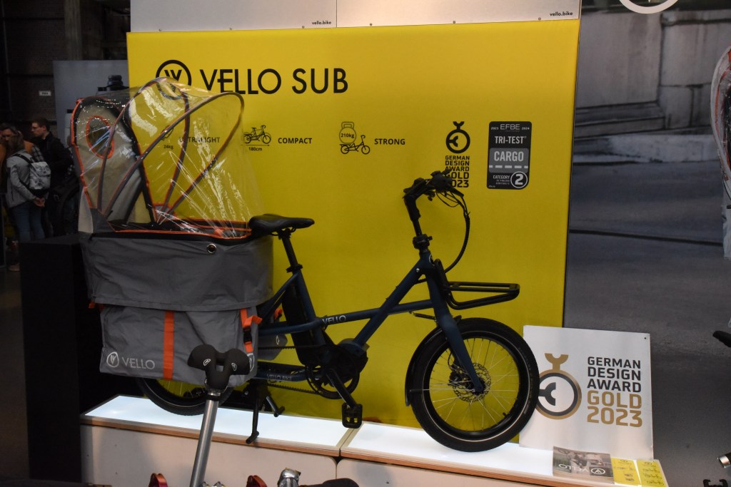 An der nächsten Ecke treffe ich wieder auf bereits gute Bekannte. Vello bike ist ein ständiger Gast auf der Cyclingworld Europe. Mittlerweile bieten Sie zwei Grundtypen an. Das bereits bekannte Vello Faltrad und das Vello Sub. Besonders raffiniert finde ich den transparenten Regenschutz über dem Kindersitz beim Vello Sub, der den Kindern einen Rundumblick bei der Fahrt gewährt.