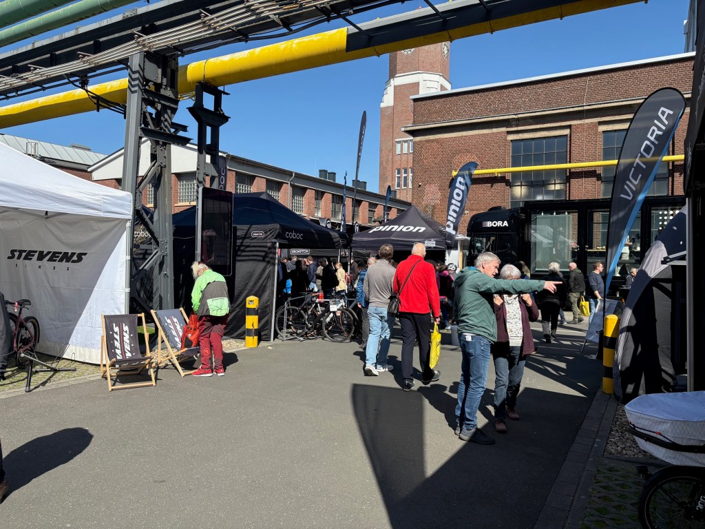 Nun bin ich schon seit gut einer Woche zurück von der Cyclingworld Europe 2025 und schaffe es leider heute erst meine Eindrücke vom zweiten Messetag zusammen zu fassen. Nach einem ausgiebigen Frühstück mit einigen Bloggern ging es bei wiederum strahlenden Sonnenschein zurück auf das Areal Böhler. Für diesen zweiten Messetag hatte ich mir vorgenommen, ein paar Anbieter aufzusuchen, die ich mittlerweile schon ganz gut kenne und nach Möglichkeit auch die ein und andere Probefahrt auf dem Testgelände zu machen. Gleich hinter dem Eingang fiel mir der Stand von „Me and My Bike“ auf. Ich weiß gar nicht warum, aber ich war ein paar Tage zuvor auf der gut gestalteten Internetseite dieses Radladens aus Düsseldorf gelandet. „Me and my Bike“ unterscheidet sich vielleicht gar nicht so sehr von vielen anderen Radläden, die ein breites Angebot aus Rädern und Zubehör bis hin zu Radleidung bieten hat bei mir aber eine sehr persönliche Eindruck hinterlassen. Ein Stück weiter steht eine Holzkiste im Weg. Alte Schläuche und Mäntel hängen über den Rand und stehen bei der Firma Schwalbe für ein ausgeklügeltes Recyclingkonzept. Schwalbe recycled Schläuche und Mäntel, um das Rohrmaterial für die Herstellung neuer Produkte wieder zu verwenden.
