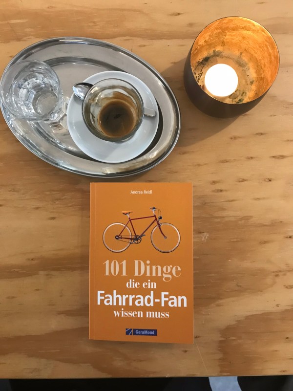 Auf einen Espresso mit Andrea Reidel Die Mittagspause näherte sich dem Ende und eigentlich wollte ich nur noch schnell einen Espresso trinken. Vorher jedoch noch kurz in den Buchladen. Eigentlich kenne ich zwar alle Fahrradbücher, aber vielleicht gibt es doch noch das 100ste-Buch zum Thema. Und richtig, da lag ein schmaler Band, den ich... Continue Reading →